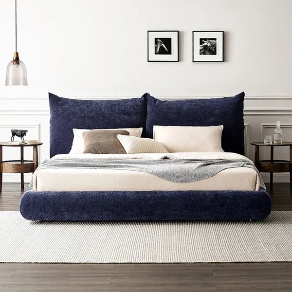 The Calviero Plush Upholstered Bed brings luxurious comfort and bold design to your bedroom. With its oversized cushioned headboard and soft fabric finish, this bed creates the perfect balance of modern style and relaxation. The low-profile frame and rounded edges add a sleek, contemporary touch, making it a statement piece for any interior. Built with high-quality materials, it ensures both durability and comfort for years to come.