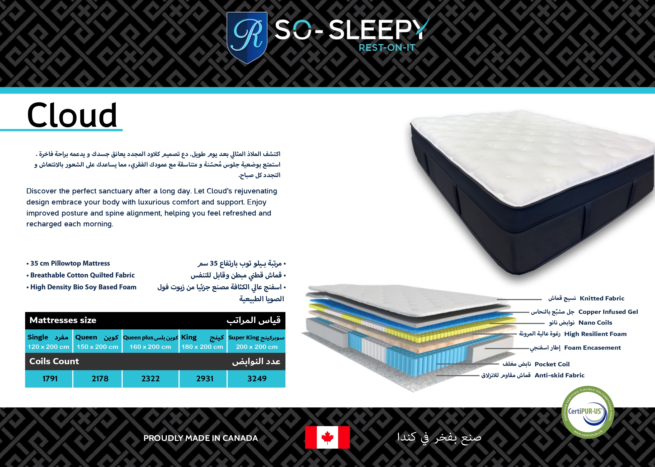 Transform your bedroom into a haven of rest with the Cloud Mattress 35 cm by Divine Furniture. Designed with a plush pillowtop and advanced sleep technology, Cloud delivers luxurious comfort while supporting healthy posture and spinal alignment. Its breathable cotton quilted fabric, combined with copper-infused gel and nano coils, ensures a cooler, fresher sleep experience with superior pressure relief. The high-density soy-based foam and resilient quilting layers provide long-lasting durability, while the foam encasement and anti-skid fabric keep your mattress stable and secure. With its premium materials and thoughtful design, Cloud offers the ultimate sanctuary for deep, rejuvenating sleep every night.