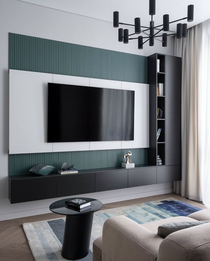 COLORWALL Modern Floating TV Unit with Teal Accent Panels