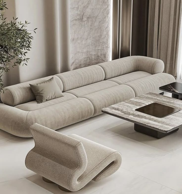 This statement piece includes a streamlined modular sofa and a uniquely contoured accent chair — perfect for contemporary, minimalist, or luxe-style interiors. Crafted for both form and function, it’s ideal for open-concept living spaces and high-end homes.