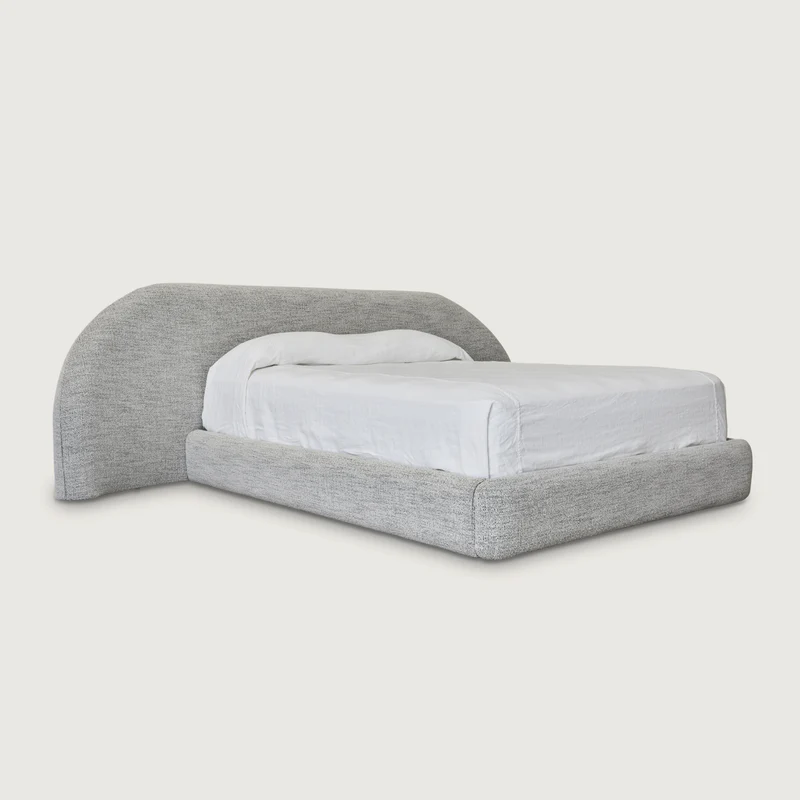 The Lunastra ArcShell Bed is a masterclass in soft, sculptural design. Featuring a sweeping crescent-shaped headboard and a fully upholstered frame, this bed brings a serene, cloud-like elegance to any modern bedroom. Its subtle textured fabric adds depth and warmth, while the low, rounded base creates a cozy, grounded feel.