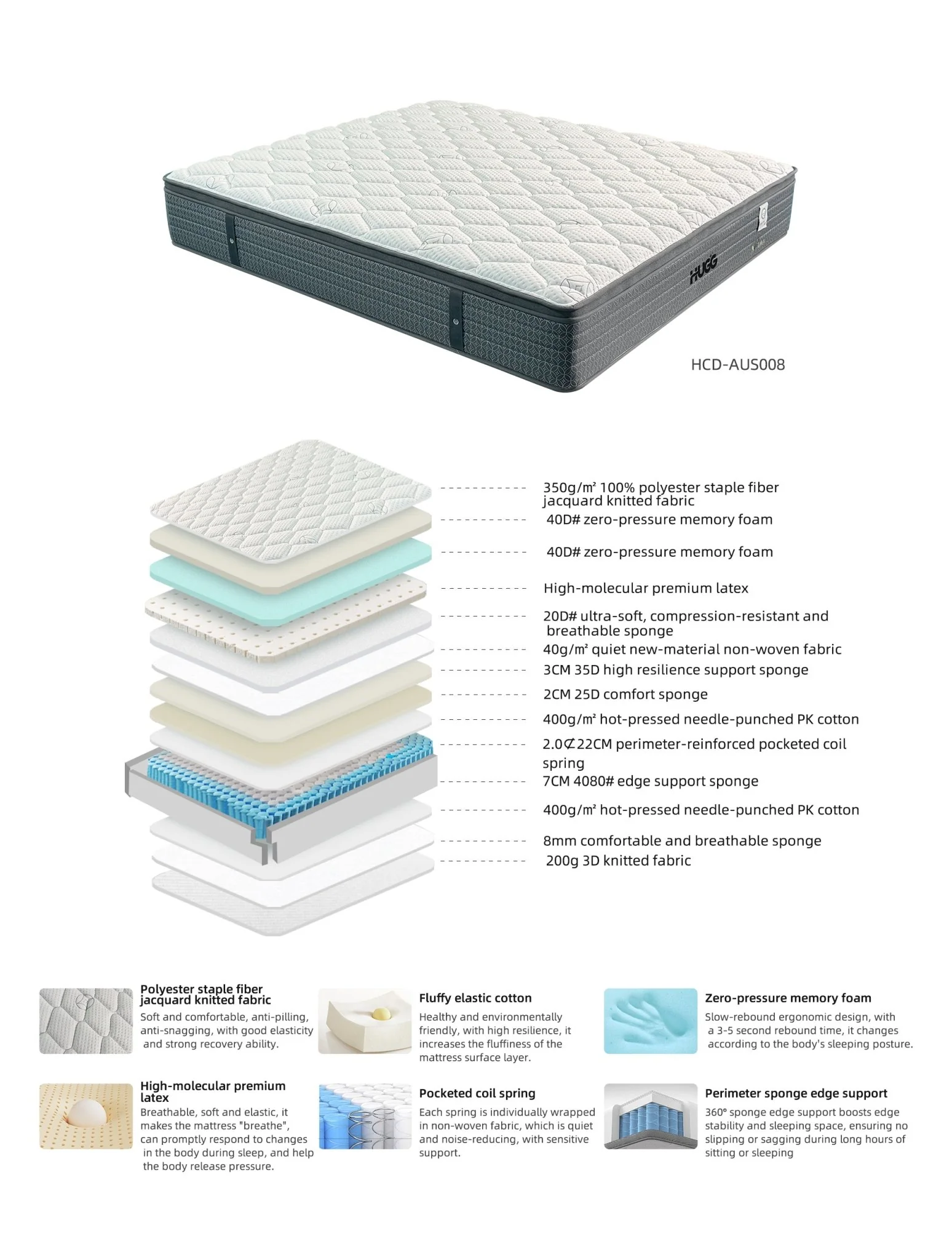 The Crown Mattress represents the pinnacle of comfort — crafted for those who desire softness with enduring support. Layers of premium memory foam and high-resilience latex are designed to provide balanced comfort and responsive support. Adapting naturally to your body’s movements while maintaining cool, consistent airflow. Deep within, precision pocketed coils create a quiet and supportive base, reinforced with a 7 cm edge for long-lasting durability and shape retention. Finished in rich jacquard-knit fabric, Crown offers a truly refined sleep experience — where luxury meets lasting support.