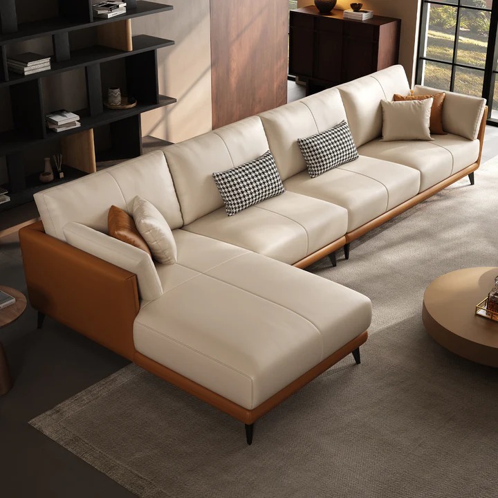 Mocha Bliss Leather Corner Sofa | Buy Beige & Brown L Shape Sofa