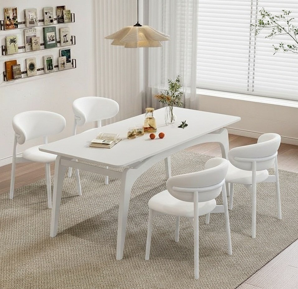 The Nordvale Pure 6-Seater Dining Set by Divine Furniture is designed for lovers of minimal elegance and modern living. Featuring a sleek white dining table with softly curved legs and six ergonomically designed chairs, this set brings a calm, airy feel to any dining space.