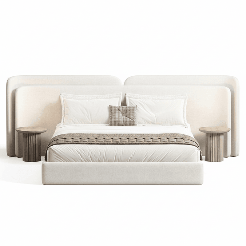 Bring timeless elegance to your bedroom with the Serena Curved Wall Panel Upholstered Bed. Designed with smooth, rounded panels and premium fabric upholstery, this bed adds a luxurious yet cozy feel to any modern interior. The integrated wall panel extends the visual height of your headboard, making your space look more spacious and sophisticated.