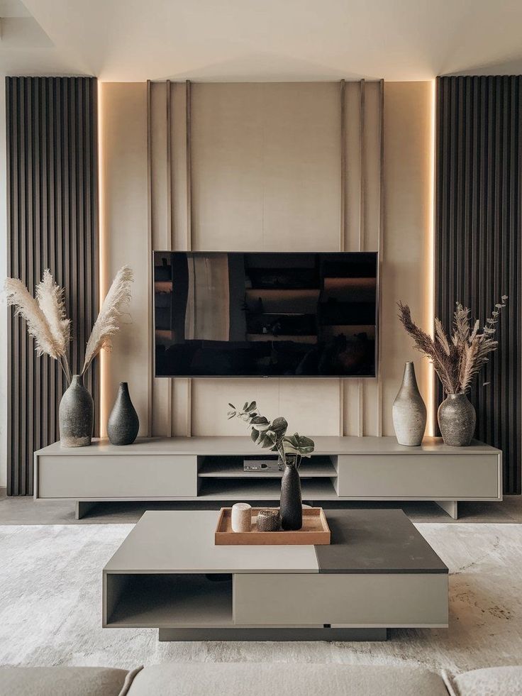 Bring nature into your home with the TERRAFLUTE Nomad Edition TV unit, where minimalism meets warmth. Featuring deep fluted side panels, a soft taupe center with decorative trims, and integrated ambient LED lighting, this wall unit is designed for those who love a calm, earthy, and contemporary vibe. The wide base console with open and closed storage completes this elegant setup.