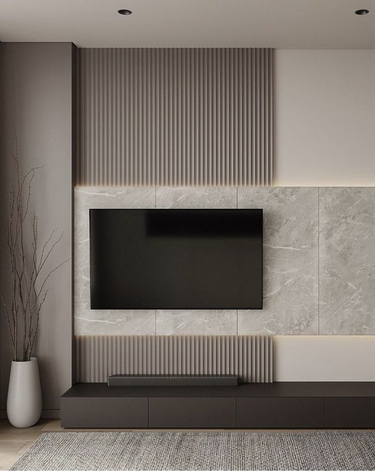 The Vetra Marble Wall Mounted TV Unit by Divine Furniture is the perfect statement of modern sophistication. Featuring a striking combination of textured wood panels, smooth marble finishes, and subtle LED backlighting, this unit transforms your living room into a refined entertainment space. The sleek dark base cabinet provides generous storage while maintaining a clean, minimalist look.