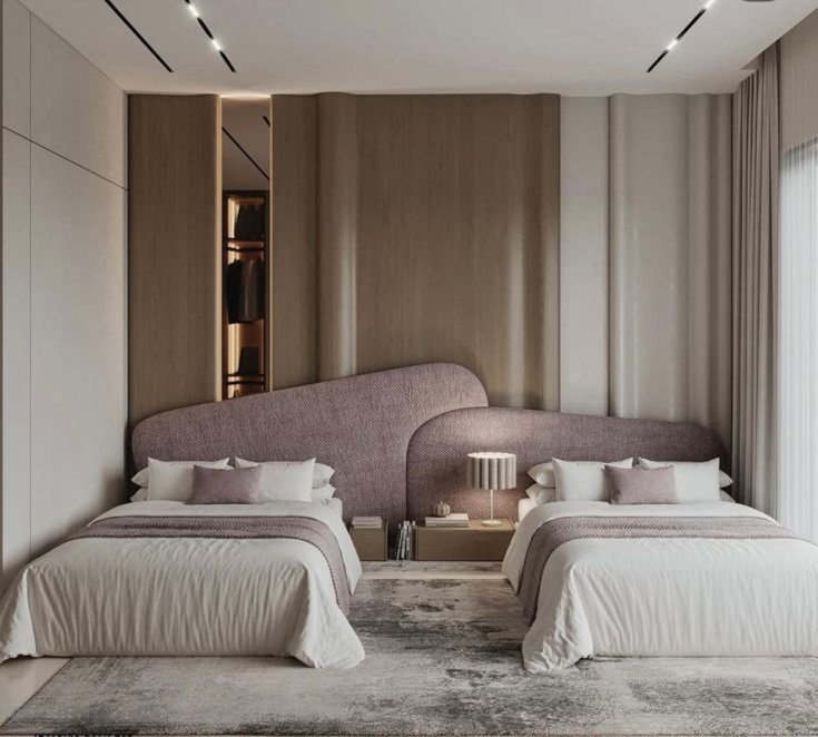 The soft, curved silhouette adds a sense of flow and harmony, while the plush fabric upholstery ensures superior comfort and elegance. Perfect for shared bedrooms, guest rooms, or luxury kids’ spaces, this twin bed set combines aesthetic appeal with practical functionality. The integrated design enhances space efficiency while maintaining a high-end, cohesive appearance.